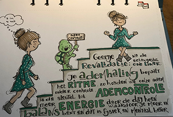 Ze ging niet bij de pakken neer zitten. Toen de allergoloog haar wees op het longrevalidatietraject twijfelde ze dan ook geen moment. Onderwerpen die aan bod komen zijn terugvalpreventie, ademhaling, belasting en belastbaarheid en deelnemers leren hoe ze met klachten en beperkingen kunnen omgaan.